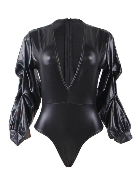 Unleash your inner confidence and ignite your edge with the captivating Black Wet-Look Leather Teddy, curated by Rachael K. This daring piece is crafted from a luxuriously smooth, wet-look fabric, designed to flatter your curves and exude a powerful allure.